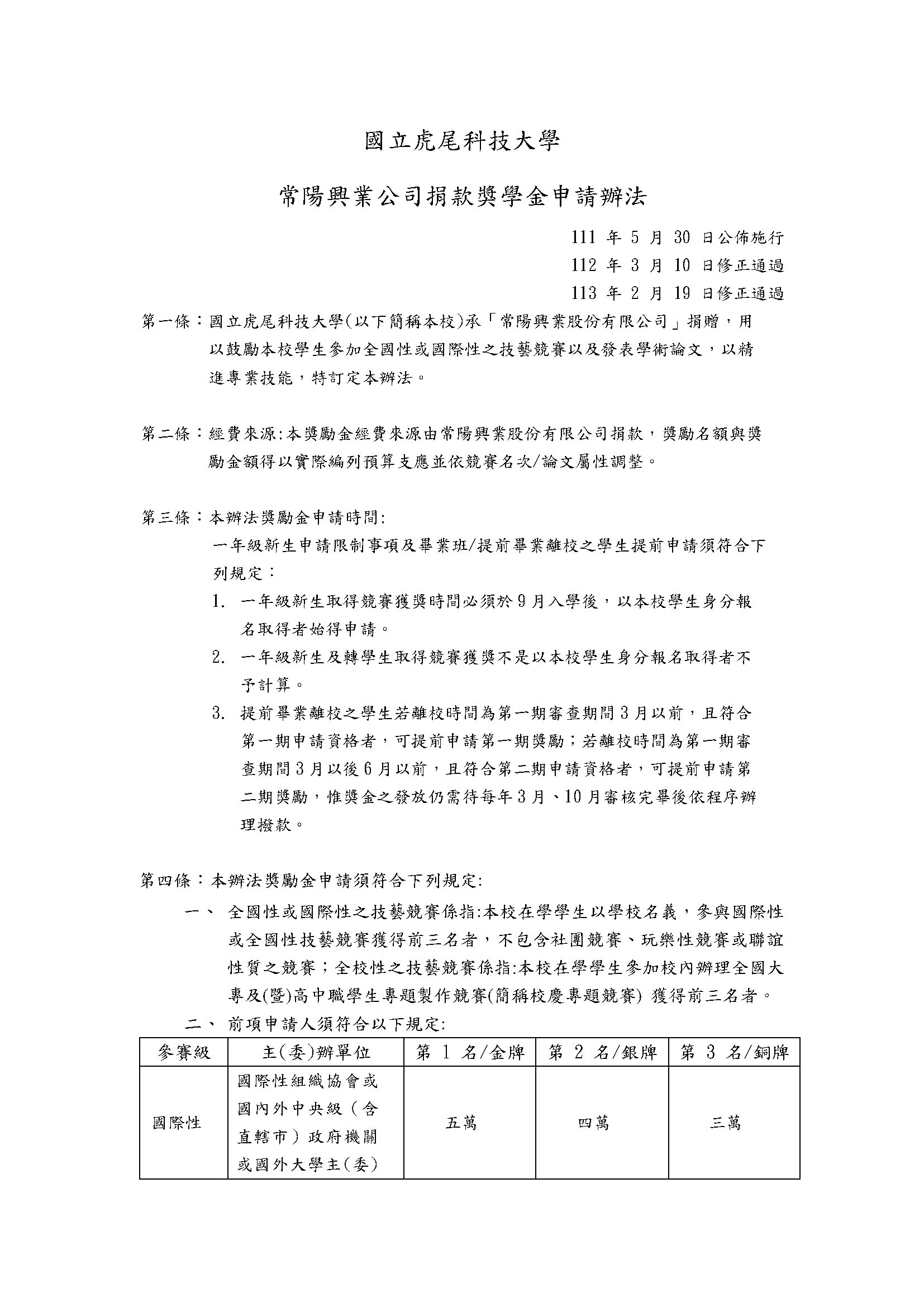 [系上公告]常陽興業公司捐款獎學金申請辦法