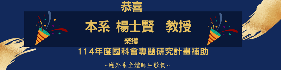 [系上公告]恭喜本系楊士賢教授榮獲114年度國科會專題研究計畫補助